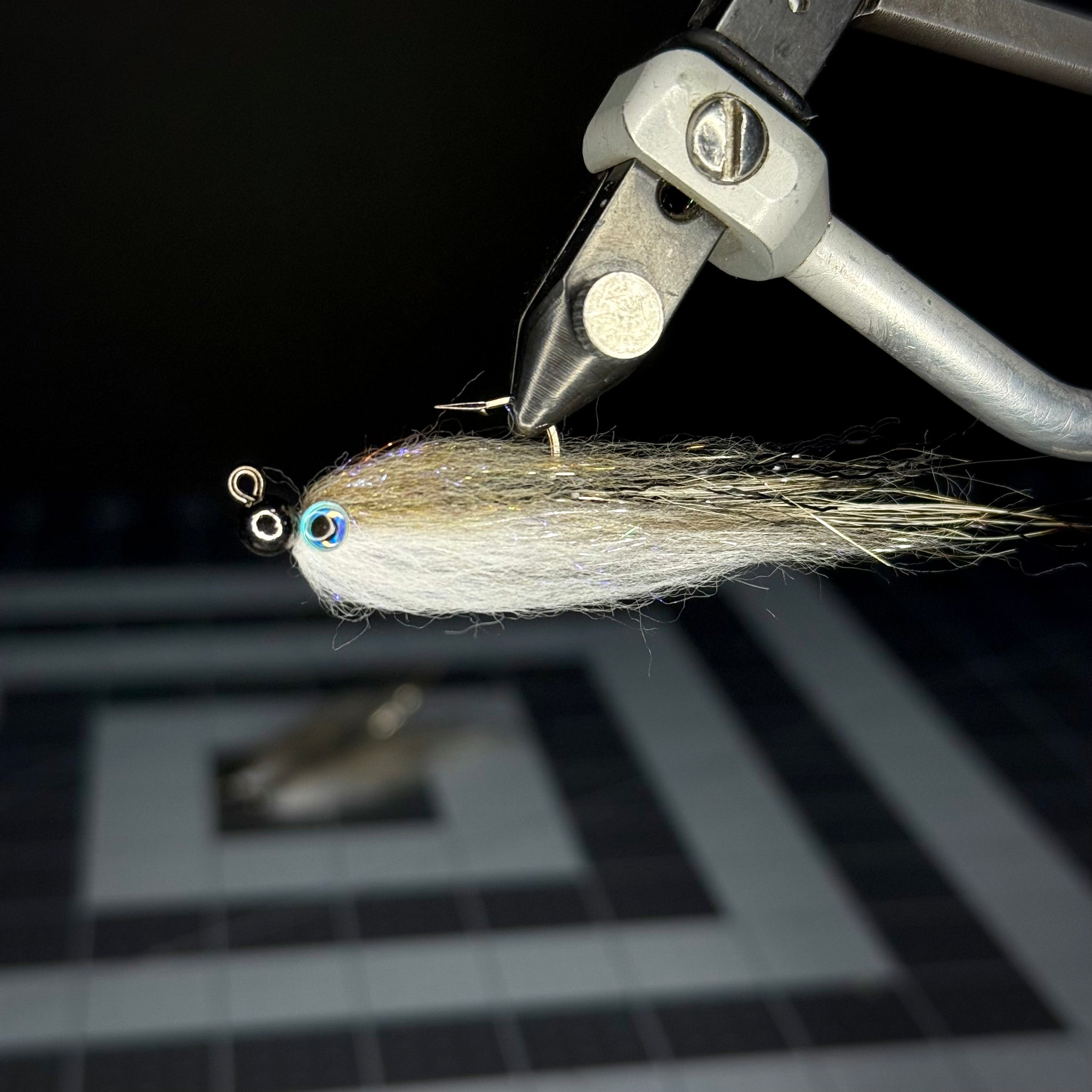 The new seamless minnow uses coyote body hair, rather than craft fur, which offers dramatically more movement and flutter when wet. The dubbing in the body is more durable and has a perfect, drab, baitfish color. I changed the bead to a more natural color and found a stronger, thinner glue for coating the eyes. The flash material I am now using is softer and gives more subtle shimmer than the stiff material on the old style. This fly penetrates the water column extremely well  because of its large tungsten head when you fish it with 2x or lighter tippet. The body profile on this fly is somewhat flat on the sides because of the glue placed on the head/eyes, and so the fly does an attractive wobble as it sinks.