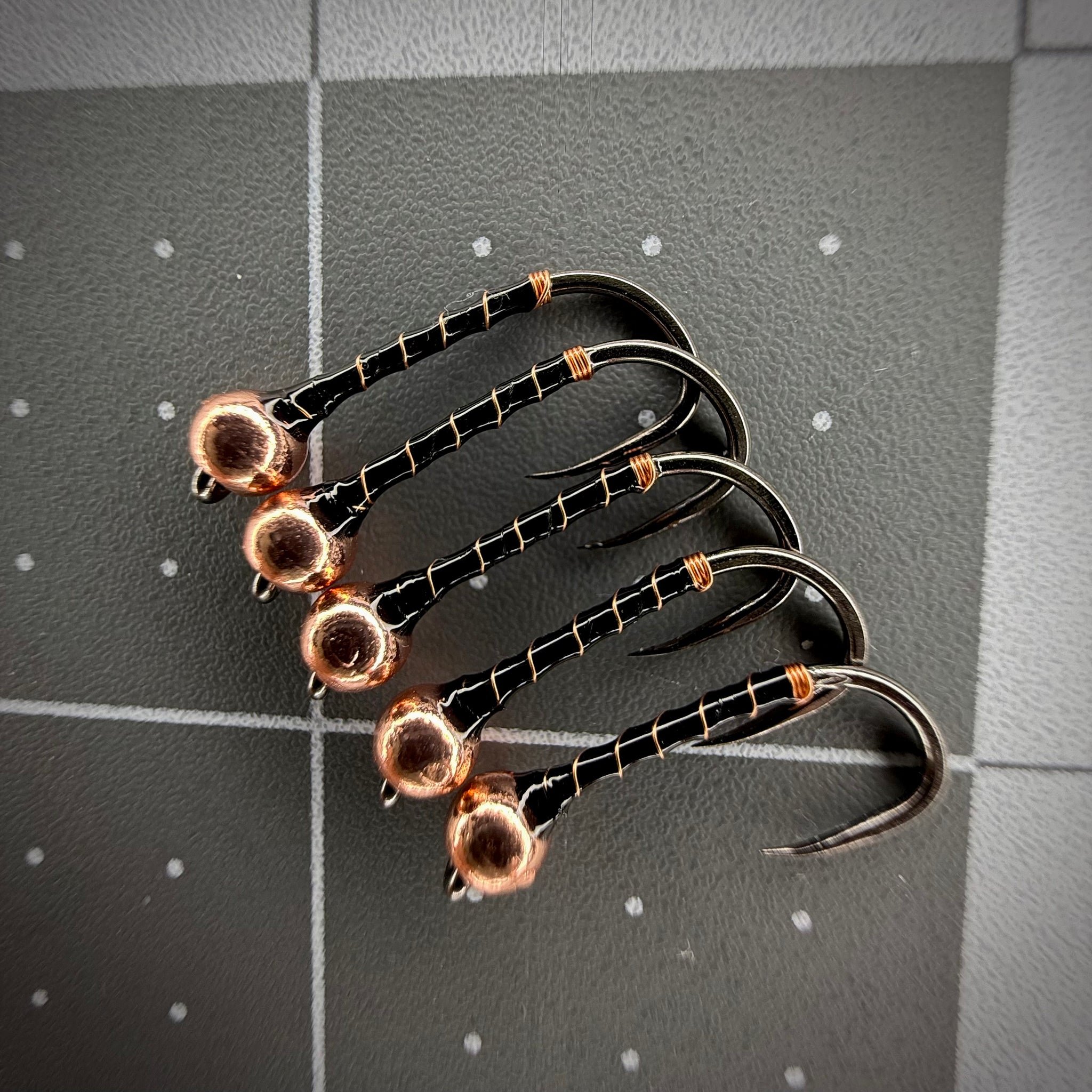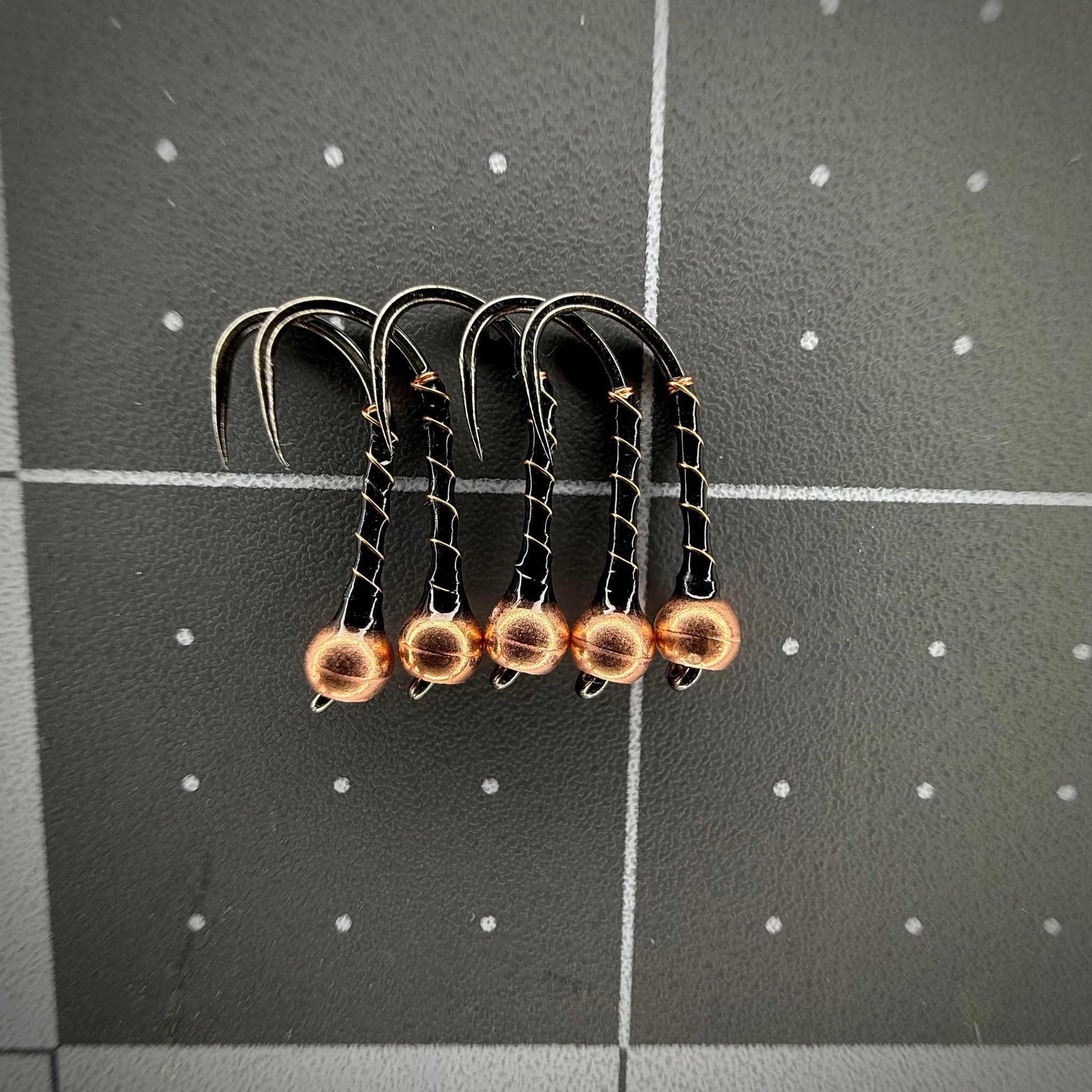 There’s a reason this color combo is one of the most popular for midge imitations all over the world. It’s a no nonsense, high contrast pattern that is incredibly reliable and versatile. My Black and Copper midges are tied on Lahontan Midge Hooks (in size 10 and 12) and utilizing premium tungsten beads and components.